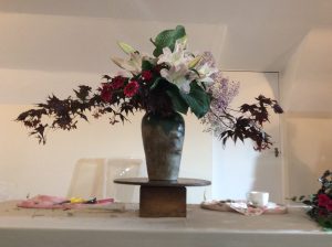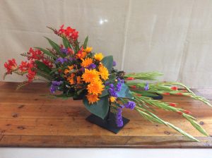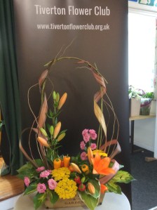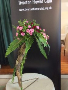What a brilliant club day we had with the very talented Fiona Hammond from Liskeard. She arrived 2 hours before the dem to be met with a tableful of miscellaneous containers and buckets of flowers and foliage. Somehow she managed to conjure up 6 stunning designs!
